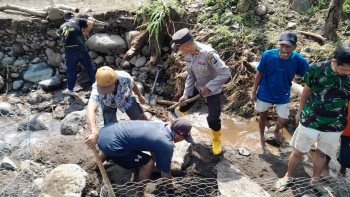 Kompak, Polisi dan TNI bersama Warga Pasang Bronjong Antisipasi Banjir...