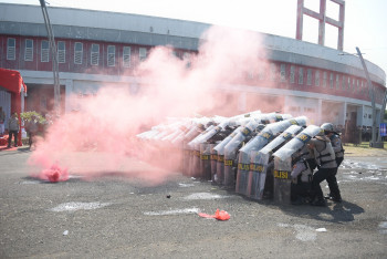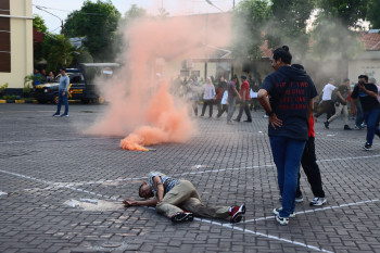Personel Gabungan Polres Pasuruan Gelar Simulasi Sispamkota Siap Amankan Pilkada...
