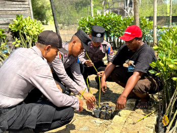 Cegah Abrasi, Siswa Diktukba SPN Polda Jatim Tanam Mangrove dan Berbagi Bansos
