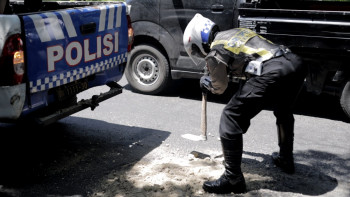 Polantas Polres Gresik Tambal Jalan Berlubang...